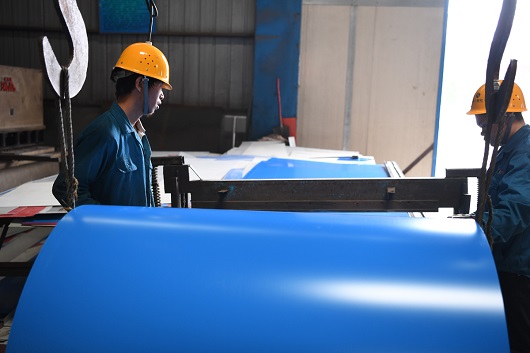 彩鋼板的基本特點就是其重量輕、強度高,安裝方便、靈活而且建造工期短,在山西鋼結構工程中廣泛應用。彩鋼板在未加工前是卷材的形式,經彩鋼機組壓制制成型后,加工成多種型號的建筑板材。山西盛大鋼結構擁有多種型號的彩鋼設備機組,包括彩鋼單板(俗稱彩鋼瓦)、彩鋼復合板(由上下彩鋼板)、彩鋼夾芯板和彩鋼折彎設備等,可滿足各領域彩鋼板應用的加工